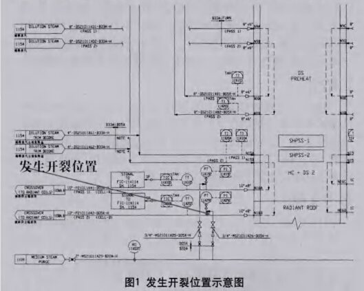 本文通過對四川石化乙烯裝置裂解爐區(qū)7#裂解爐橫跨段壓力表處發(fā)生的物料泄露事故進(jìn)行分析,研究其產(chǎn)生裂紋的原因 及相應(yīng)的對策,為避免再次發(fā)生同類事故提供幫助。